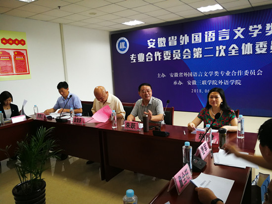 本网讯 6月23日,安徽省外国语言文学类专业合作委员会第二次全体委员会议在合肥举行,省外文学会会长、省外语专业合作委员会主任朱跃教授主持会议。我校林莉兰教授应邀出席,并代表全省理工农医类组别院校,当选委员会副主任。