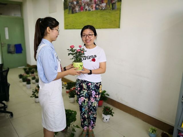 学院负责人和各位同学,将一盆盆叶繁花茂、姹紫嫣红的康乃馨、欧月季、长寿花、蟹爪兰、白鹤芋、九里香送至一线教师手中,并送上亲手书写的卡片,向老师们致以节日的祝贺与问候。花海之间,笑语欢声,教职工在愉悦的气氛中,欢度第三十五个教师节。(文/图:陈晋;审核:林莉兰 )