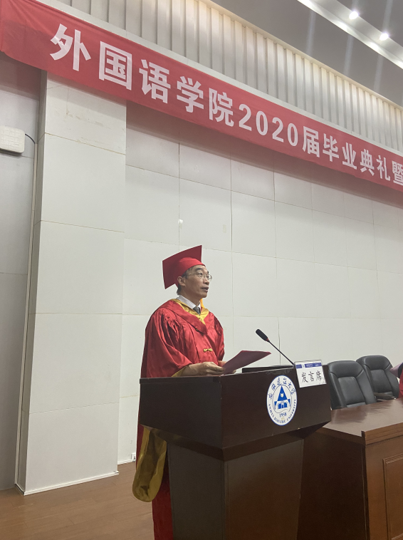 林莉兰代表学院全体师生,祝贺毕业生顺利毕业,踏上人生新里程,并希望同学们志存高远,感恩社会,感恩母校。校品学兼优毕业生、2016级英语专业毕业生朱子怡代表毕业班全体学生致答谢辞。朱子怡代表2020届外国语学院毕业生感谢学校、老师的培养,今后,谨记“进德、弘毅、博学、善建”的校训,以优异成绩回报母校的培养。