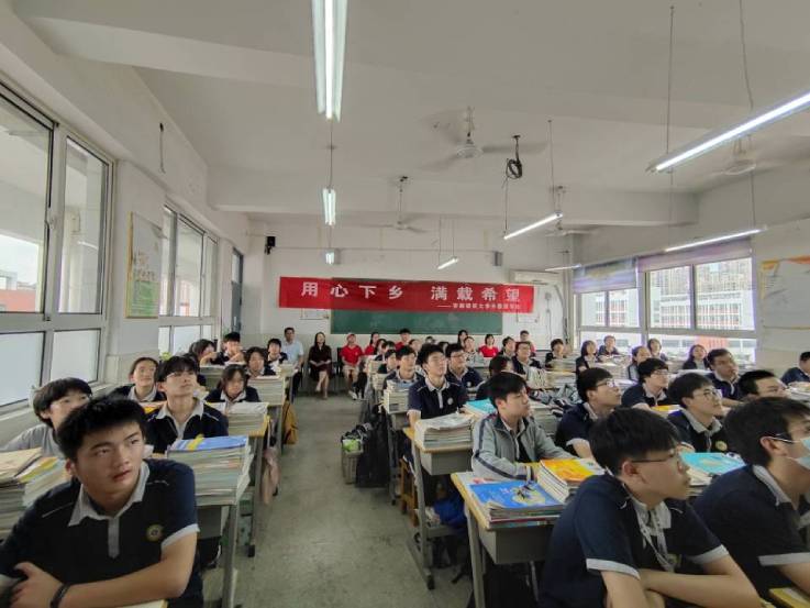 活动过程中,师生团队前往来安中学进行了党史和心理等一系列主题宣讲活动,学院党总支副书记汪令宇带领高中生们回顾了井冈山革命历史,号召同学们学习井冈山革命精神。随后学生党员们还向同学们介绍了他们向往已久的大学生活,分享了英语学习的感悟和实用技巧,同学们认真聆听仔细思考,课堂氛围积极友好。此外,根据高中生学习任务较重心理压力较大的实际情况,团队有针对性进行了心理健康宣讲活动,以生动有趣的语言向同学们分享了心理健康知识,引导同学们合理调控心理压力。团队向来安中学的师生们介绍了我校在乡村振兴工作中取得的成绩,努力的方向,前进的目标。在最后的互动交流环节,在场高中生们踊跃参与,课堂氛围活跃,欢声笑语不断,团队还向同学们赠送了精心准备的课外书籍、学习用品和体育用具等小礼物。