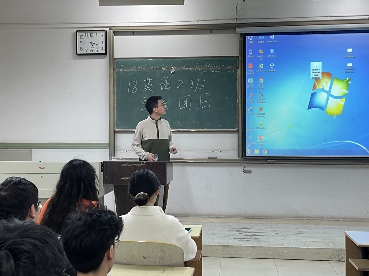 本网讯10月22日,外国语学院2018级英语二班团支书在逸夫楼5520教室举办了“请党放心,强国有我”的主题团日活动,旨在引导同学们“学党史、强信念、跟党走”。