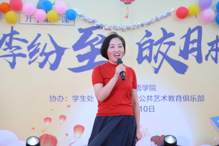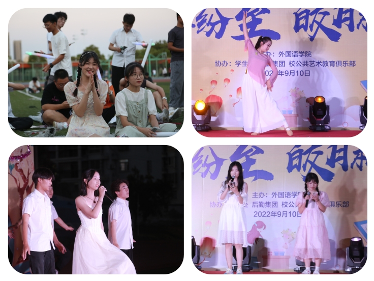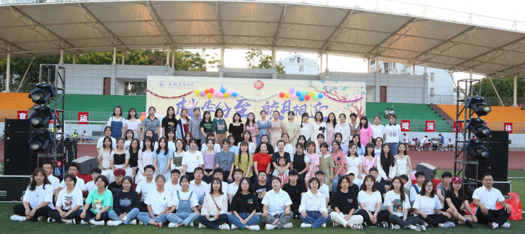 本网讯 一轮秋影转金波,飞镜又重磨。9月10日晚,为喜迎中秋佳节和教师节,陪伴2022级小萌新们度过第一个远离家乡的团圆之夜,感受来自学校的温暖,外国语学院在南区操场上举办开学第一课暨新生中秋晚会。学院党政、全体辅导员和新生们欢聚一堂,伴着月光月色,畅谈大学时光,欢度中秋佳节。舞台正对一轮圆月,同学们围坐在操场中间,欢声笑语回荡在校园中。