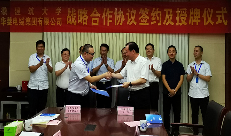 本网讯 8月26日,副校长蔡新立率队赴安徽华菱电缆集团有限公司签订校企产学研战略合作协议,并为学校和安徽华菱电缆集团有限公司产学研合作基地、科技成果孵化基地揭牌。科学技术处、科技成果转化中心、材化学院相关人员参加活动。