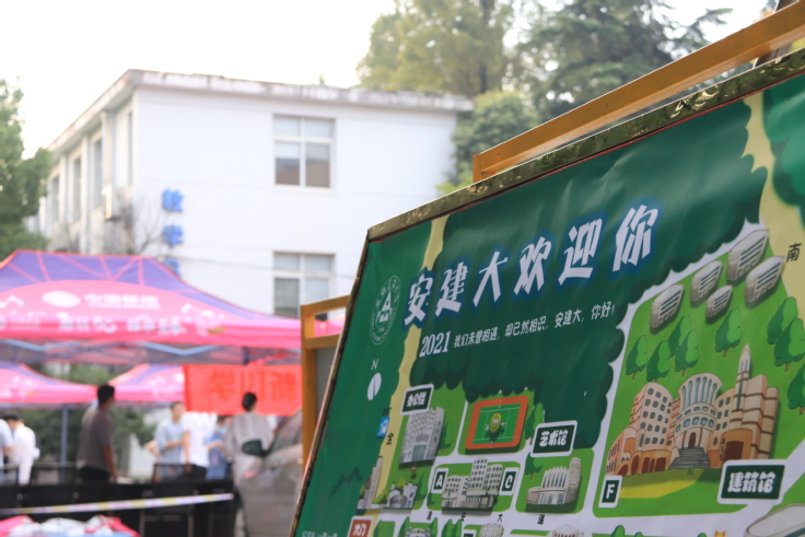 为了迎接你,我们早早开始准备,校园里拉起一条条欢迎横幅,路口边放置一块块指引展板,一顶顶彩色帐篷下,是建大师生们翘首以盼的身影。