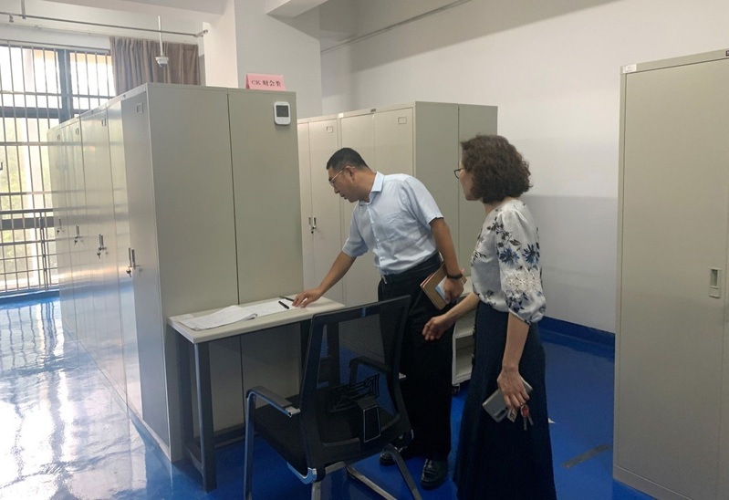 蔡国军首先对馆舍进行了全面考察,详细询问馆库功能区隔、设施设备、各门类档案集中统一管理等情况,细致查看档案利用登记、档案保管条件和保管状况等。随后,与全馆在会议室亲切座谈。