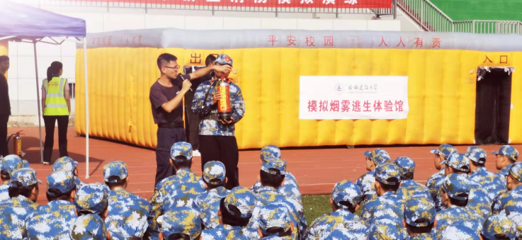 消防模拟演练设置两个灭火器扑救火灾场景和一个烟气疏散场景,让学生通过实景实地的演练和操作,掌握利用灭火器扑救初期火灾的技巧和发生火灾的逃生的方法。