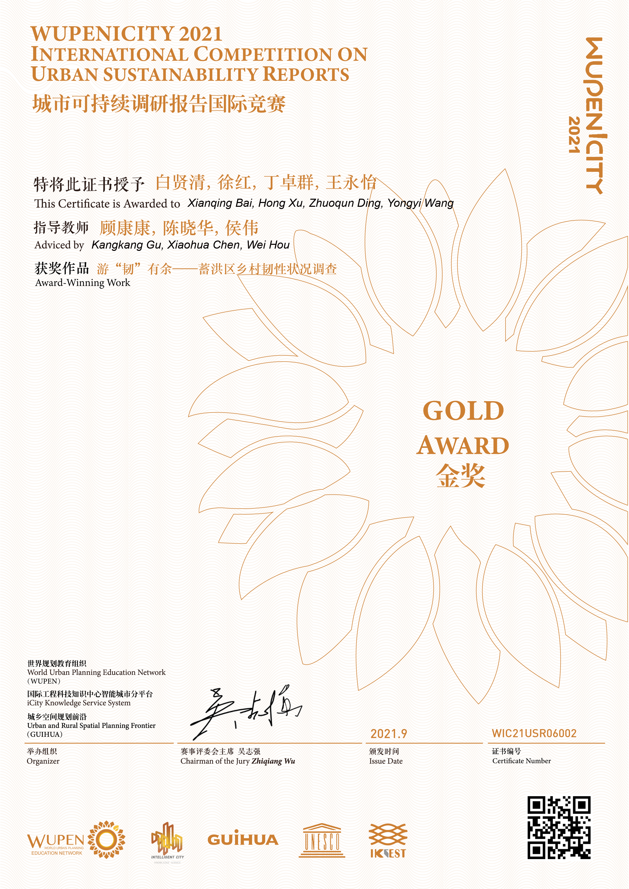 本次竞赛由世界规划教育组织、联合国教科文组织iCity智慧城市服务平台、《Guihua》杂志联合主办。WUPENiCity2021城市设计及2021城市可持续调研报告共1768份,其中2021城市可持续调研报告竞赛参赛团队共758支,包括清华大学、同济大学、武汉大学、华南理工大学、西安建筑科技大学等知名高校。
