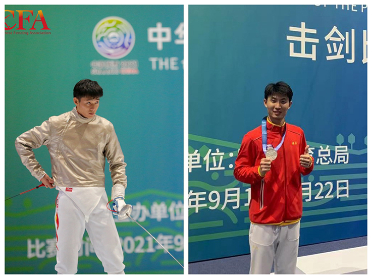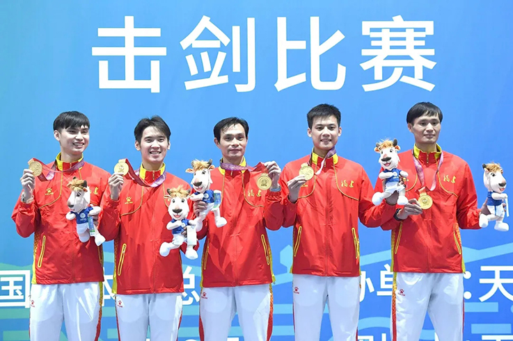 在为期6天的紧张赛事中,击剑项目总共产生12枚个人、团体金牌。我校2019级黄梦恺同学在第3日的比赛中获得男子花剑项目的个人金牌,实现了连续两届该组别的全运会个人冠军均被我校高水平运动员摘得的战绩;陈海威、黄梦恺组合的团体在第4日比赛中获得男子花剑团体金牌;2019级代锐同学在第2日的比赛中获得男子佩剑项目团体银牌;2019级俞乐凡同学在第5日、第6日的比赛中获得男子重剑个人银牌、团体银牌。