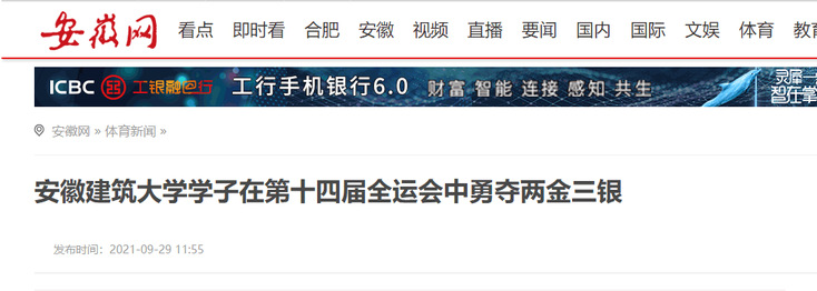 编者按:近日,第十四届全国运动会在陕西闭幕。本届全运会,我校11名高水平运动员参加了花剑、重剑和佩剑三个剑种的赛事,获得全运会两枚金牌、三枚银牌的好成绩。9月29日,安徽网对此进行了报道。