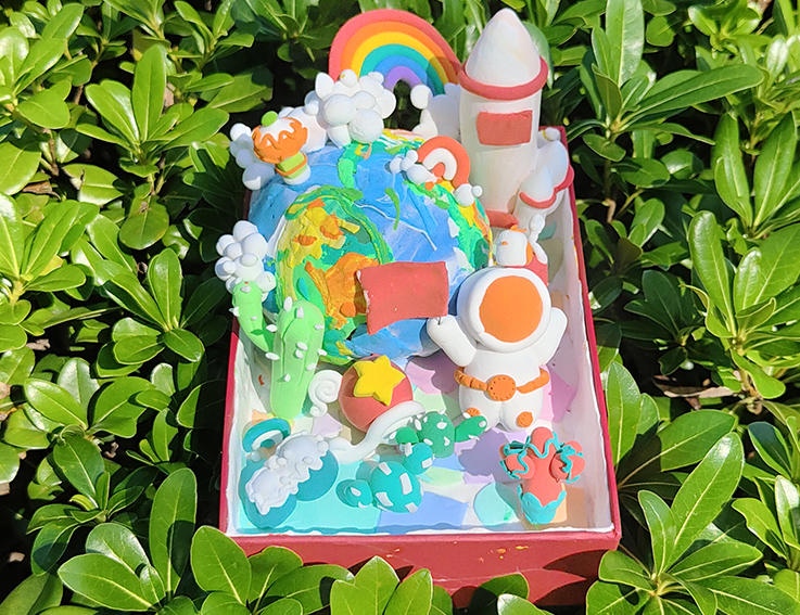 艺术学院同学围绕国庆主题,以黏土、毛线、绒布等材料为基础真诚的爱国热情与拳拳赤子之心融入手工作品的创作之中,以组合拼贴、平面浮雕等多元化的艺术表现手法在方寸之间浓缩举国欢庆的盛况,在掌中天地里展现中华盛世的大好河山,抒发青年学子们胸中的“中国情”