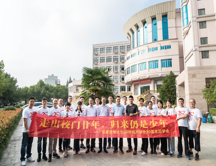本网讯 10月6日,ku游官方98级房地产专业校友毕业20周年返校联谊。校党委副书记、校长黄显怀看望校友并与校友进行交流,合影留念。