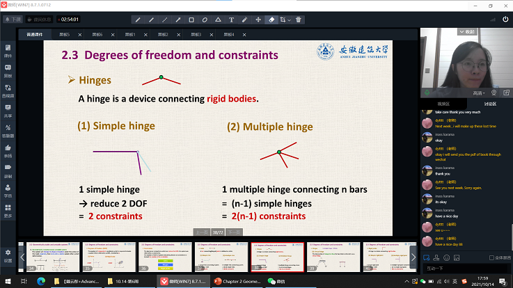 本学期留学生课程教学涉及8个学院、32门课程,针对不同层次、不同国家留学生灵活安排教学任务。本科留学生教学采用网络课堂+辅导答疑形式进行,教师及时上传教学材料、教学视频,组织学生自学并采用线上答疑、线上作业、线上考查等多种形式进行教学指导;硕士留学生由授课教师通过“微师”网络平台对留学生进行面对面的全英文教学,与校内研究生授课进程保持高度一致;汉语预科生通过线上课堂实时授课。留学生们虽身处不同的国家和时区,但都能够积极主动地参与到课堂学习之中。