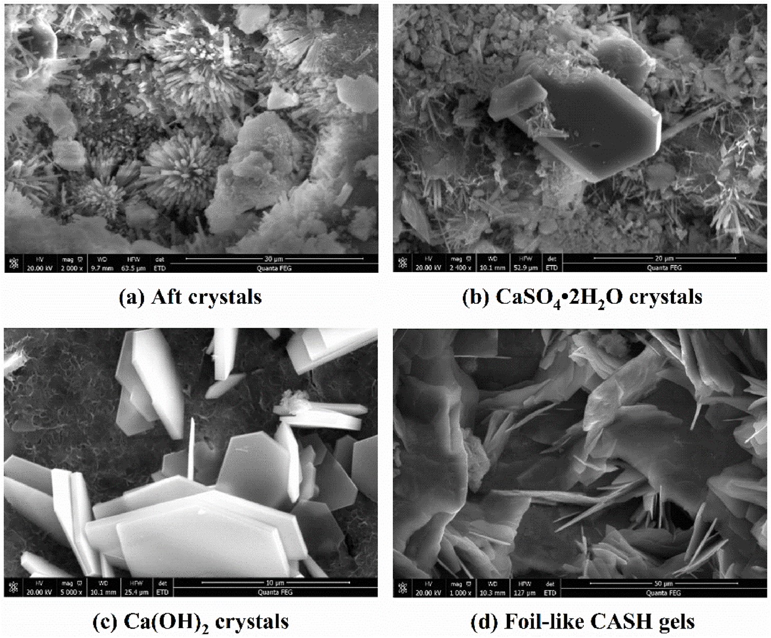 Fig. 2 SEM spectra of the hydration products in the cement-slag composite pastes.