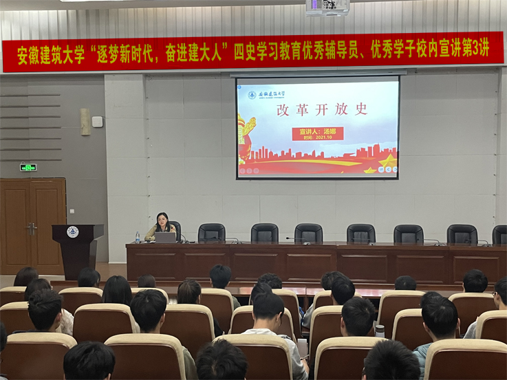 据悉,“‘逐梦新时代,奋进建大人’四史学习教育优秀辅导员、优秀学子校内宣讲”第4讲将于11月份举行。(/图:段宁 水天柱  张锐;审核:斯方龙)
