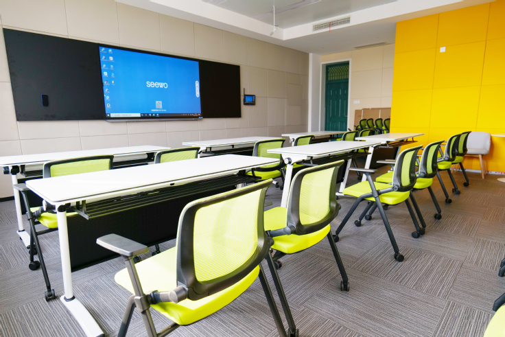 培训中心由主教学楼6楼的三间智慧教室组成,按功能分为教学发展培训室、教学沙龙室和微格教学训练室。