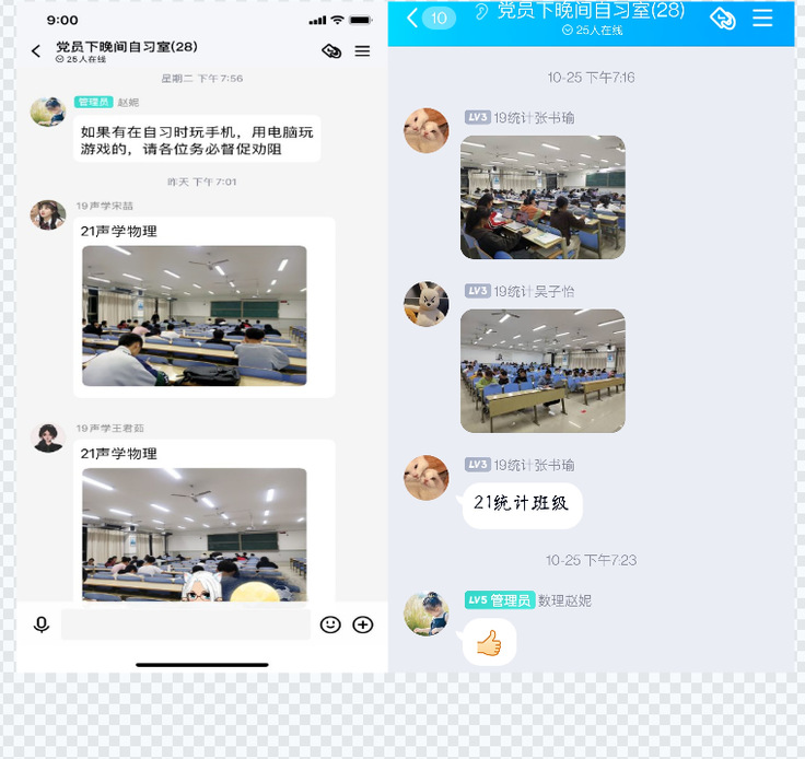 朋辈帮扶共奋进。开学以来,学院建立党员示范岗,选派优秀学生党员代表到21级晚自习教室,与新生进行学业交流,帮助新生答疑,进一步发挥党员朋辈在学风建设方面的示范带头作用,为数理学院营造浓厚的学习氛围。同时,学院还注重培养同学之间互助团结的优良品质,营造良好学习氛围,成立学业帮扶小组,帮扶同学和被帮扶同学签订学业帮扶合同书,小组成员一般为六到七位人,负责对该组成员进行帮扶,并且定期汇报学习情况。