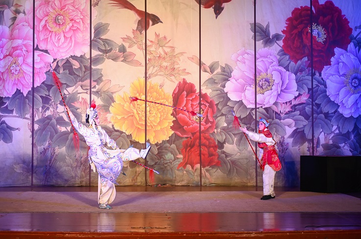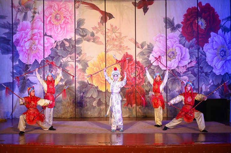 整场演出在徽剧《白蛇传·盗草》的紧张氛围中拉开序幕,委婉动听的唱腔、丰富传神的表情再现了白素贞为救许仙前往昆仑山盗取灵芝仙草的场景,演员们的一招一式,充分发挥了剧种的特色优势,塑造出一个个鲜活的人物形象,举手投足都吸引着台下师生们的目光,整个报告厅掌声经久不息。《拾玉镯》礼赞了青年之间纯真自由恋爱的美好也是一折富有喜剧色彩的生活小戏。精彩绝伦的故事,令人眼花缭乱、如行云流水般的动作,让观众频频叫好。还有京剧《盗库银》《天女散花》这些经典选段,演员们真挚饱满的情感,娴熟精湛的动作,悠扬婉转的腔调也都深入人心,全场演出高潮迭起,掌声、快门声、叫好声不断。