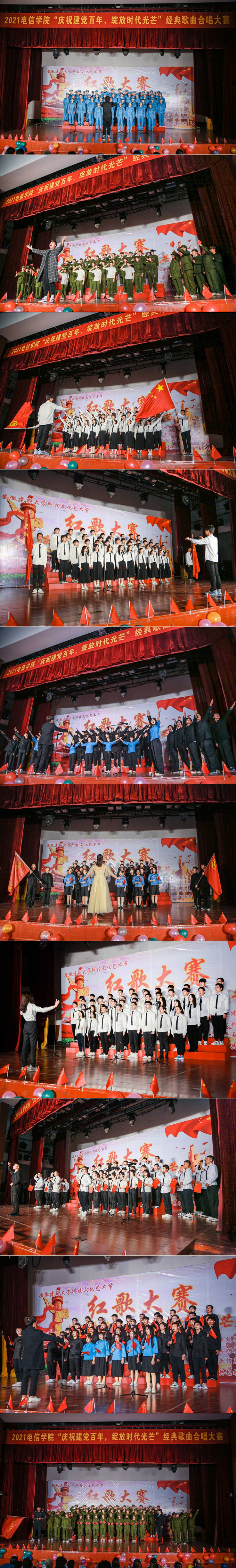 本讯网  飞扬的歌声,歌唱难忘的岁月。熟悉的旋律,演绎时代的乐章为庆祝中国共产党百年华诞,培养广大学生爱党爱国情怀,同时紧密结合学校团委科技文化艺术节活动主题,1117电信学院组织全体21级新生在大学生活动中心报告厅举办“庆祝建党百年,绽放时代光芒”主题红歌大赛。