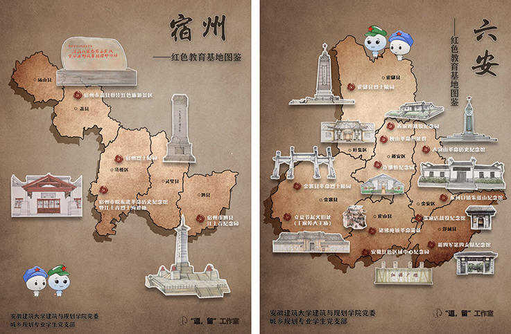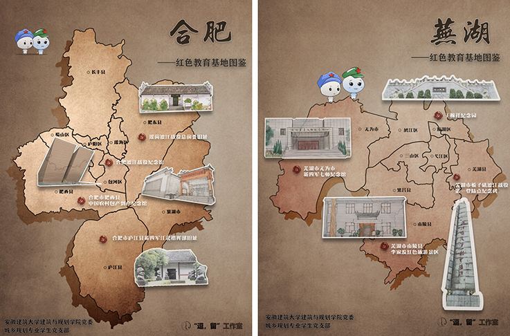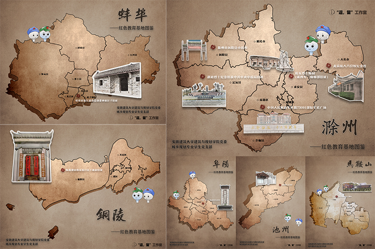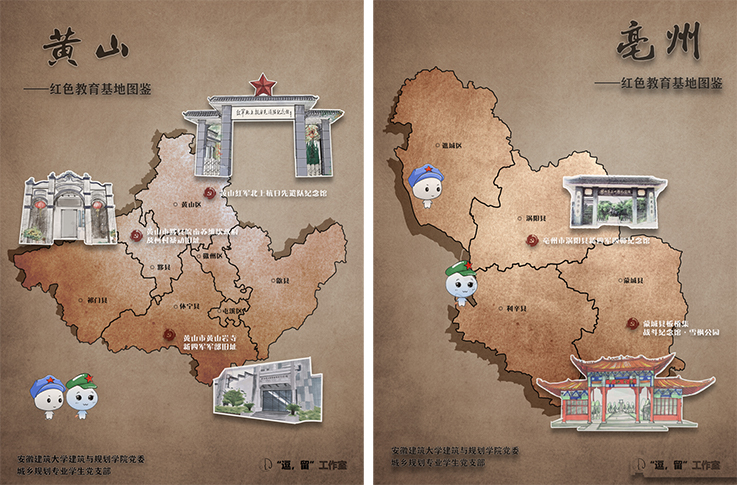 本网讯 为庆祝中国共产党成立100周年,积极创新党员学习教育新载体,建筑与规划学院城乡规划专业学生党支部联合逗留工作室,以“探寻安徽红色记忆”为主题,围绕安徽浓厚的红色文化底蕴,深入挖掘红色文化资源,立足学科专业特色,采取“互联网+手绘表现+红色研学+党史学习”模式,历经7个月,走访16个市,搜集整理史料及相关图文资料,拍摄500余张照片,手绘200余张画稿,撰写2万余字,修改20余版,最终完成《安徽省红色教育基地图鉴》共计72张。