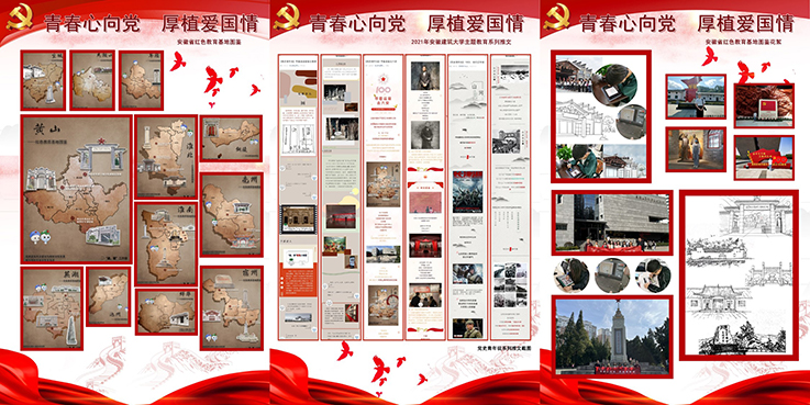 利用传统媒体、网络系列文章、短视频、H5动画、展板等多形式呈现《安徽省红色教育基地图鉴》,开展以“青春心向党 厚植爱国情”为主题的实践成果展,献礼建党百年华诞,激励当代大学生竖立坚定理想信念,从党史中汲取续写新辉煌的强大精神力量。