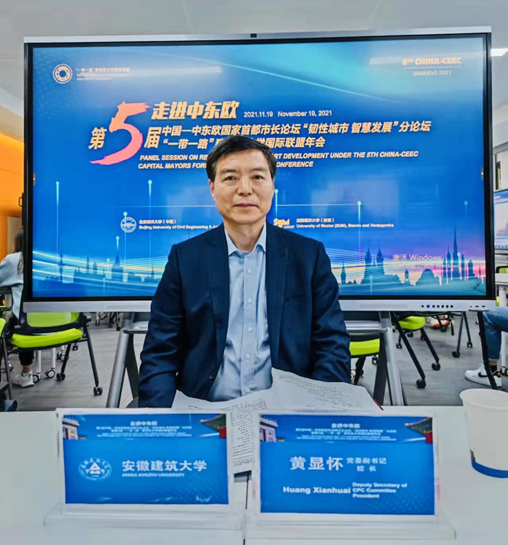 本网讯 11月19日,第五届中国—中东欧国家首都市长论坛“韧性城市 智慧发展”分论坛暨第五届“一带一路”建筑类大学国际联盟年会以“云会议”形式召开。会议由北京建筑大学与波黑莫斯塔尔大学联合承办,来自中国、英国、俄罗斯、意大利等15个国家39所高校与机构的200多名代表参加会议。作为“一带一路”建筑类大学国际联盟的发起成员单位,我校党委副书记、校长黄显怀,副校长闵杰出席会议,国际交流合作处全体人员及“2021国际大学生建筑设计与数字建模竞赛”参赛师生代表参加会议。
