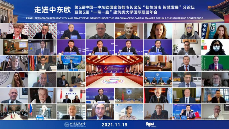 本网讯  11月19日,第五届中国—中东欧国家首都市长论坛“韧性城市 智慧发展”分论坛暨第五届“一带一路”建筑类大学国际联盟年会以“云会议”形式召开。会议由北京建筑大学与波黑莫斯塔尔大学联合承办,来自中国、英国、俄罗斯、意大利等15个国家39所高校与机构的200多名代表参加会议。作为“一带一路”建筑类大学国际联盟的发起成员单位,我校党委副书记、校长黄显怀,副校长闵杰出席会议,国际交流合作处全体人员及“2021国际大学生建筑设计与数字建模竞赛”参赛师生代表参加会议。