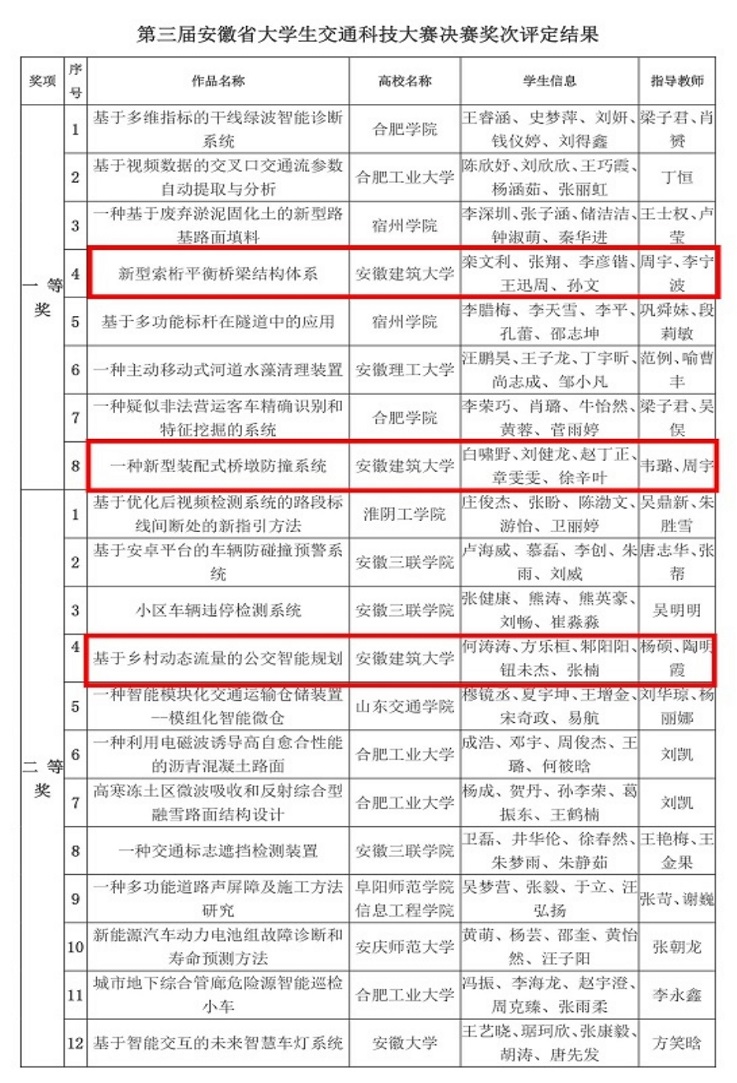 【学科专业竞赛】我校土木学子在第三届安徽省大学生交通科技大赛中获佳绩