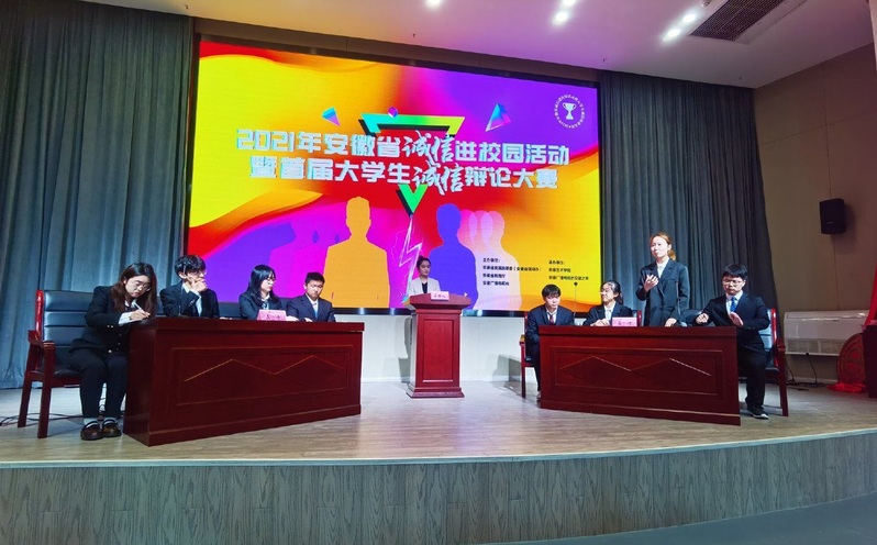 本网讯 为继承和发扬中华传统诚信文化,突出时代特征和育人特色,引导大学生强化诚信意识,安徽省发改委、安徽省教育厅联合主办,安徽广播电视台承办了安徽省第一届大学生诚信辩论赛。公共管理学院辩论协会代表队参赛并荣获合肥市赛区二等奖,同时在省级决赛中荣获道德风尚奖。
