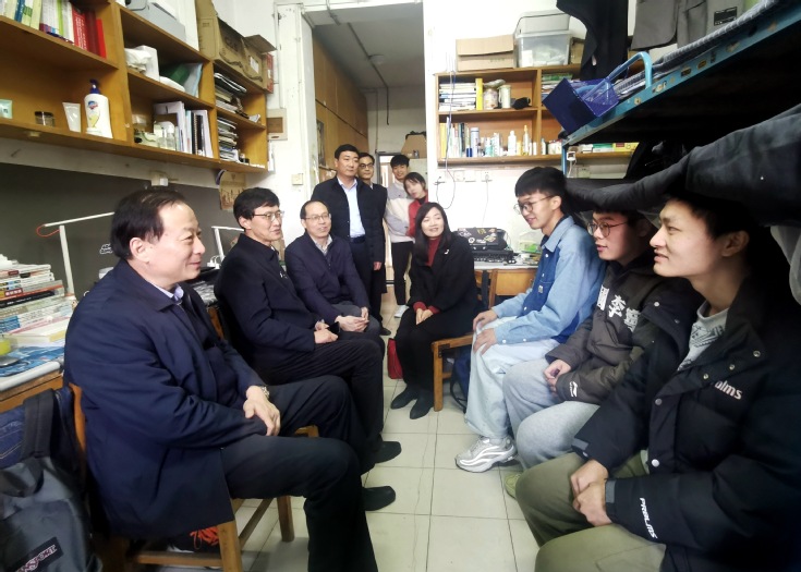 午饭过后,蔡校长走进学生宿舍,查看宿舍卫生、设施备配等情况,并饶有兴趣的与同学们拉起了家常:“老家是哪里的?”“兄弟姊妹几个?”“住宿还有没有什么困难?”……同学们与领导老师促膝而谈,聊家庭情况、聊学习规划、聊校园生活、聊卫生习惯。蔡新立提醒同学们注意冬季保暖,继续做好疫情防护的常态化工作,并就大家提出的希望新增洗衣机的问题进行了回应。