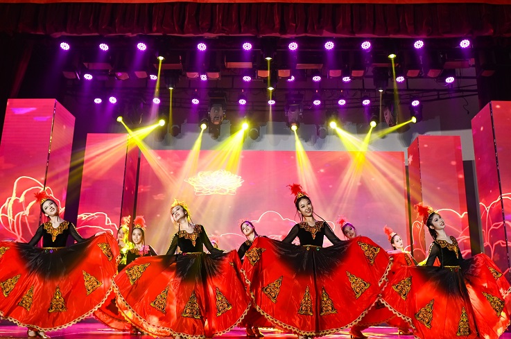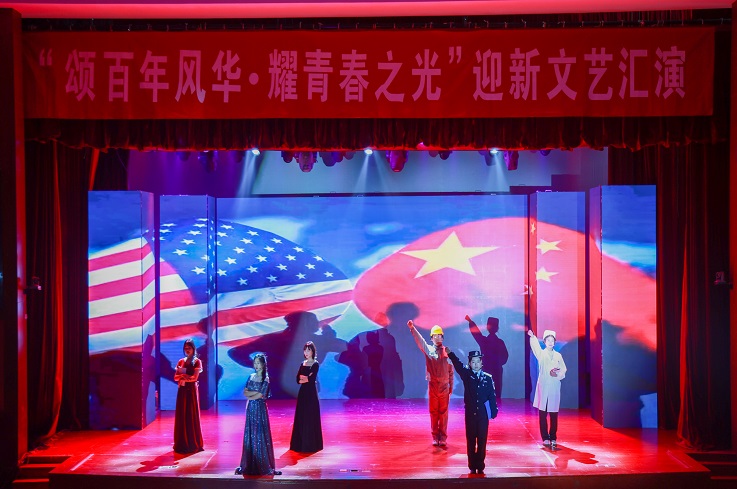 国家的进步,印着青年的足迹,国家的未来,寄望于青年的力量。节目《奔跑的青春》以歌伴舞的形式向大家展现了晚会的主题,洋溢着青春的光彩,展现了青春的朝气蓬勃;英语歌剧《抗疫茶话会》以崭新的形式演绎了近两年中美在应对新冠疫情问题上的巨大差距,讴歌了疫情期间挺身而出的中华儿女;舞蹈《花儿为什么这样红》《笑傲江湖》以优美的身姿和动感的节拍舞动青春热血,礼赞建党百年。建大青年用歌声表白、用舞蹈庆祝,表达对新年的美好祝愿,向伟大的党致以崇高的敬意。