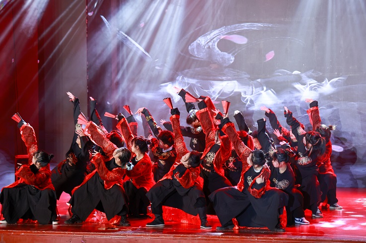 以大爱之心育莘莘学子,以大美之艺绘传世之作。建大学子载歌载舞,共贺华诞,整场表演在一片欢声笑语中结束。本次迎新文艺汇暨美育系列工作优秀作品展播活动充分展现了“颂百年风华,耀青春之光”的主题,歌颂建党百年的光辉历程,反映了建大学子们良好的精神风貌与多彩的文化生活。新的一年,学校将更加积极推动校园艺术教育发展以及文化建设,建大学子将以青春之名书写清澈挚爱,以满腔热血献礼中华,跃进新时代,奏响新征程!(文/图:张毅 徐朦 周欣雨;审稿:唐志敏)