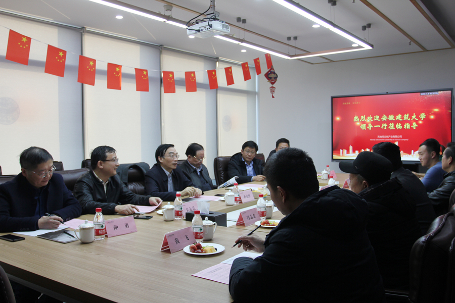 本网讯 近日,党委书记孙道胜,副校长蔡新立率队赴天地间博展科技有限公司签署战略合作协议。天地间博展科技有限公司董事长刘伟,学校科技处、科技成果转化中心、建筑与规划学院以及天地间博展科技有限公司相关部门负责人参加了签约仪式。