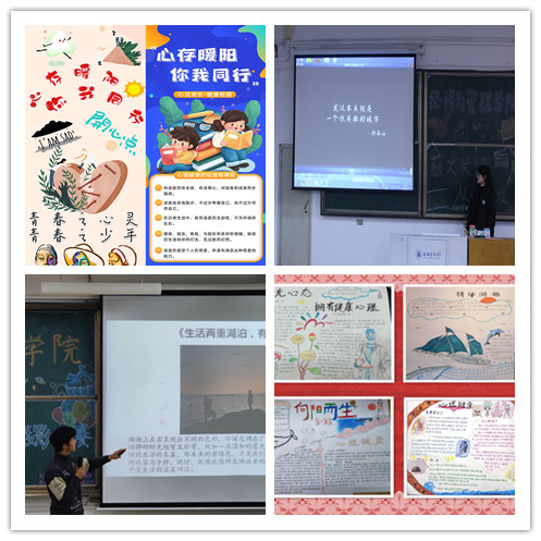环能学院推出多篇推文,普及抵抗抑郁情绪的方法,电信学院开展的“心存暖阳,你我同行”系列心理健康宣传海报征集活动和材化学院举办的主题为“心海扬帆”的第四届心理手抄报比赛,提醒大学生们关注心理健康,以健康乐观的心态迎接未来。环能学院开展的“易海星途,佳影满心弦”主题心理摄影大赛,引导学生用镜头记录生活中的美,用心感受美好。环能学院组织观看的心理影片《肖申克的救赎》,在启迪学生心灵的同时,还激励同学们在受挫的道路上毅然前行。