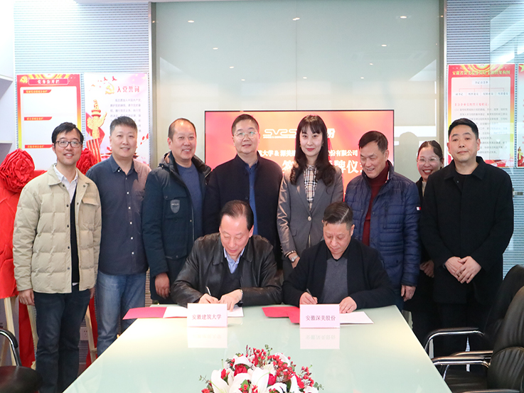 本网讯 近日,副校长蔡新立率队赴安徽省深美建设环境科技股份有限公司签订校企产学研战略合作协议,并为双方产学研合作基地、科技成果孵化基地揭牌。科学技术处、科技成果转化中心、环境与能源工程学院、安徽省BIM工程中心相关人员参加签约和揭牌仪式。