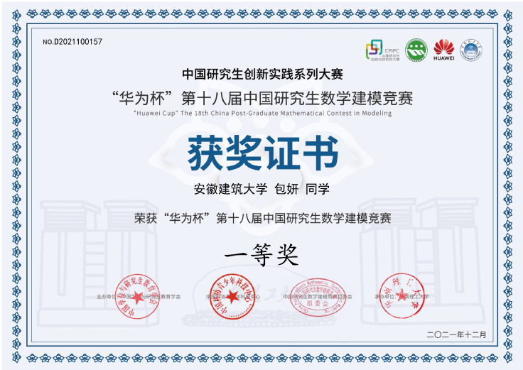 本网讯 2021年“华为杯”第十八届中国研究生数学建模竞赛结果于近日揭晓,我校共有20支队伍参赛,其中荣获全国一等奖1项,二等奖1项,三等奖3项。这是我校首次在该赛事中荣获全国一等奖,实现了历史性的突破。本届大赛国内外共459个研究生培养单位的17692支研究生队伍参赛,一等奖获奖比例仅为1.16%,二等奖获奖比例为12.29%,三等奖获奖比例19.89%。