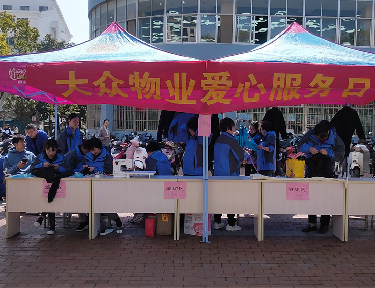 下午,公寓中心组织南北校区物业分别在南校区紫云食堂广场和北校区1号公寓门前继续开展爱心服务日活动。为师生提供免费理发、爱心缝补、衣服熨烫、小家电、自行车、雨伞维修等暖心服务项目,前来进行理发、缝补、维修的学生络绎不绝,与志愿者们说说笑笑,现场氛围温馨欢快,让春日更添温暖。