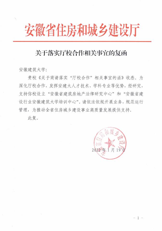 本网讯 近日,安徽省住房和城乡建设厅复函我校,正式批准我校成立“安徽省建筑房地产法律研究中心”和“安徽省建设行业ku游官方培训中心”。