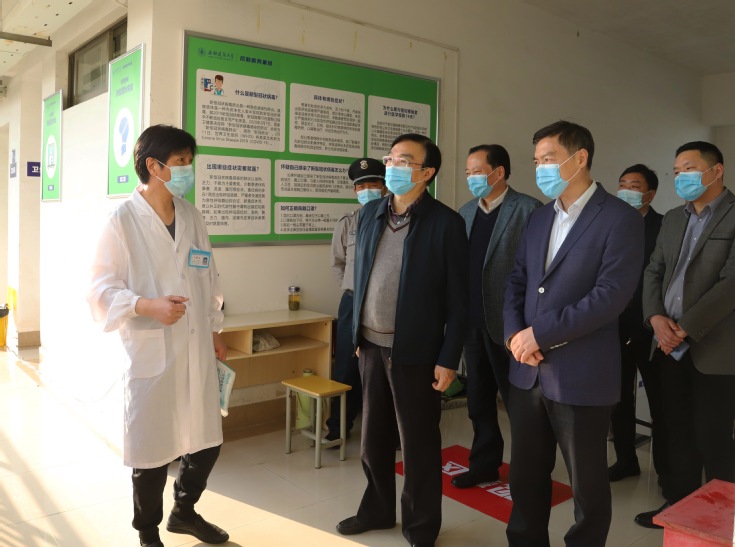 本网讯 3月11日上午,学校召开大会全面部署疫情防控工作。下午,校党委书记孙道胜,校党委副书记、校长黄显怀,校党委常委、副校长蔡新立等一行在有关部门陪同下,深入一线检查指导疫情防控工作。
