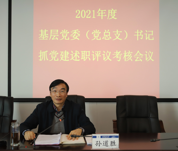 本网讯 3月11日,学校在南校区实验综合楼21楼第一会议室召开2021年度基层党委(党总支)书记抓党建述职评议考核会议,校党委委员、各基层党委(党总支)书记、职能部门主要负责人参加会议,校党委书记孙道胜主持会议。