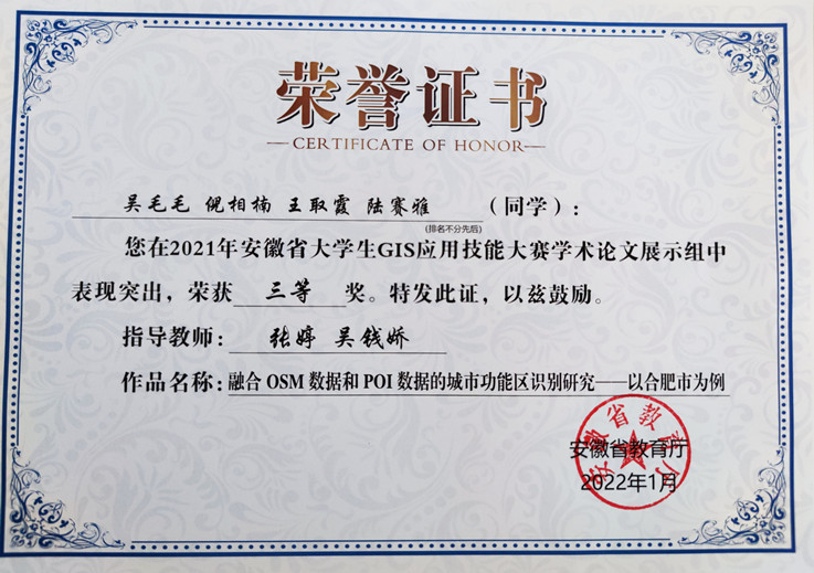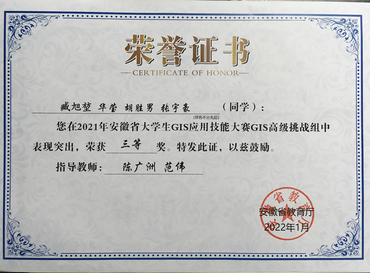 本网讯 近日,由安徽省教育厅主办,安徽师范大学承办的2021年安徽省大学生GIS应用技能大赛成功举办。大赛分GIS基础应用组、GIS高级挑战组、学术论文展示组三个赛事组别进行。