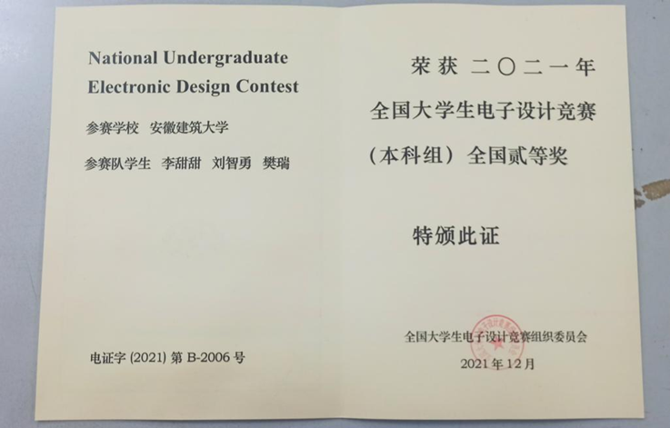 本网讯 近日,由教育部和工业和信息化部主办的全国电子设计大赛成绩公布。由电信学院夏巍、梁祥莹老师指导的樊瑞、李甜甜、刘智勇团队在全国比赛中斩获二等奖。