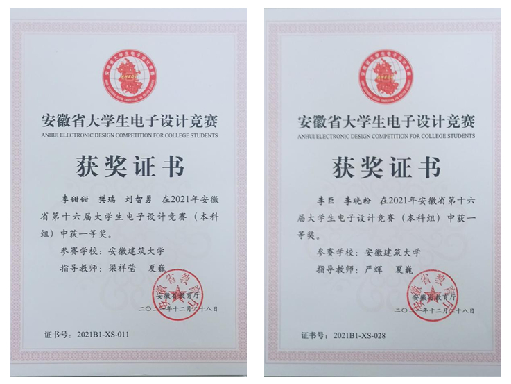 此外,电信学院学生在安徽省赛区也获得佳绩,由严辉、夏巍老师指导的李巨、李晓粉团队和梁祥莹、夏巍老师指导的李甜甜、樊瑞、刘智勇团队均获得安徽赛区一等奖;由陈杰、梁祥莹老师指导的汪震、王玉杰、刘元昊团队获得安徽赛区三等奖。