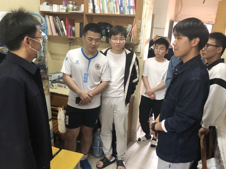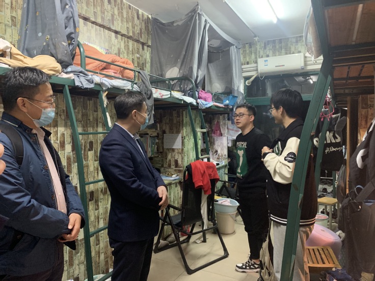 在走访中,张亚新深入经管学院学生宿舍与毕业生亲切交谈,仔细询问同学们的学习、饮食、住宿、就业等情况,认真倾听同学们的意见和想法。他勉励同学们模范遵守疫情防控管理期间的各项规定,在做好毕业、就业准备工作的同时,合理开展体育锻炼,保持与家人、老师的沟通交流,以积极阳光的心态度过这段特殊时期。