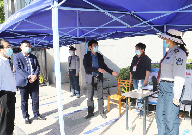 4月7日,学校疫情防控工作领导小组常务副组长、校党委常委、副校长蔡新立率校办公室、组织部、保卫处、后勤集团等相关负责人检查北校区疫情防控工作。