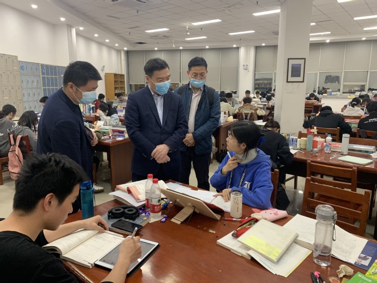 4月6日晚,校党委副书记、校长黄显怀在相关人员陪同下深入学生宿舍、图书馆等地,与学生亲切交谈,了解学生在校的学习和生活状态。