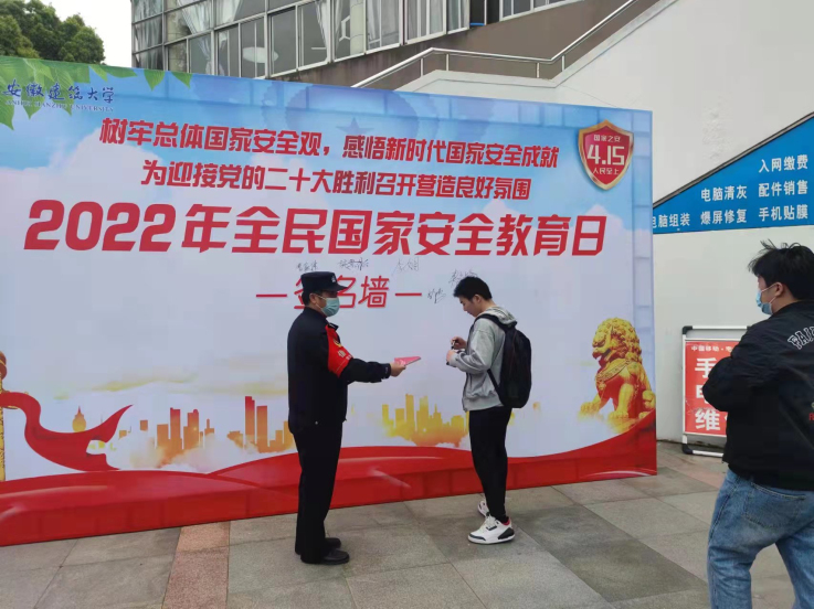 校办公室、宣传部、保卫处联合组织学生参加“全民国家安全教育日有奖竞答”活动,观看由安徽省公安厅、合肥市公安局联合出品的“4.15全民国家安全教育日VR全景沉浸式游览”视频,动员学生“4.15”当天在南北校区积极参加保密教育和国家安全教育签名宣传活动。