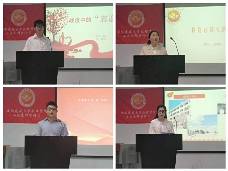 疫情反复,封闭式的校园管理考验着每一位在校大学生。此时的宣讲团凝聚力量,以“青春战‘疫’”为主题,通过学院微信公众号“‘小欧’先锋宣讲团”专栏,开展线上线下宣讲。宣讲员通过分享青年志愿者奋战一线,恪尽职守的感人故事号召大家听从指挥,积极配合学校防疫工作,等待疫情结束后与美好春天尽情拥抱。