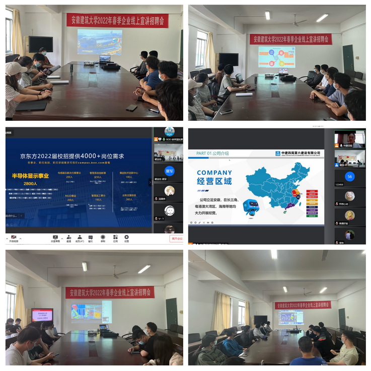 线上宣讲稳就业。线下校园招聘活动暂停之后,就业工作处主动出击,积极联系中建二局、中建四局、中建八局、中铁四局、中铁上海工程局、中铁十局、京东方科技集团、长鑫存储与志邦家居等30余家优质企业和用人大户,通过线上专场宣讲招聘会的形式,为毕业生提供送岗服务。就业工作处在南校区大学生活动中心搭建专门的线上宣讲室,方便毕业生集中参与线上宣讲与互动,提高线上宣讲招聘活动的效果。3月以来,100余家单位通过线上专场招聘宣讲会形式,为毕业生提供就业岗位8000余个。