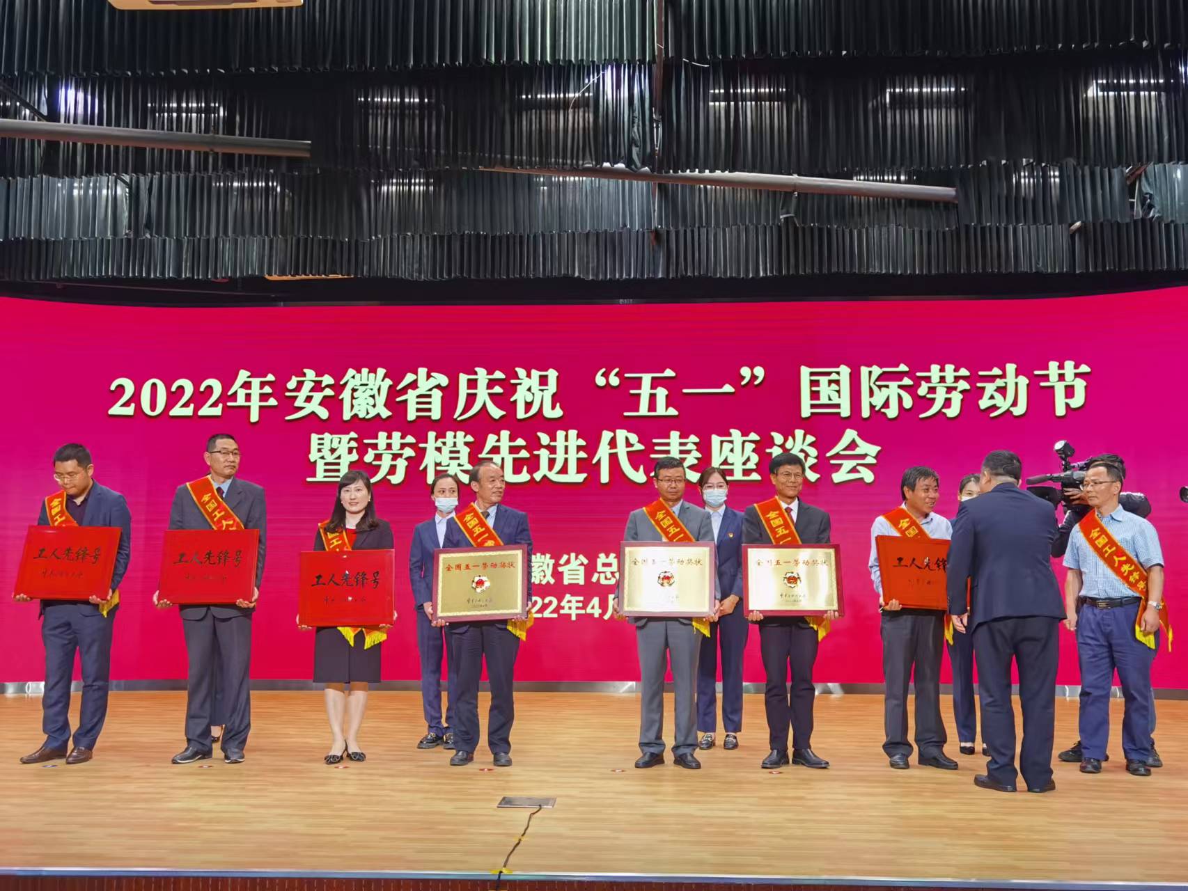 本网讯 4月28日,在“五一”国际劳动节来临之际,安徽省劳模先进代表座谈会暨颁奖典礼在省电信大楼召开,省总工会领导、省总机关各部门及各产业分会主要负责同志出席会议,在肥2022年全国五一劳动奖和全国工人先锋号获奖代表,在肥2021年度省劳动竞赛先进集体和先进个人代表参加会议。我校公共管理学院作为中华全国总工会授予的“全国工人先锋号”单位应邀参加会议并领取奖牌,这是我校首次获得此项殊荣。