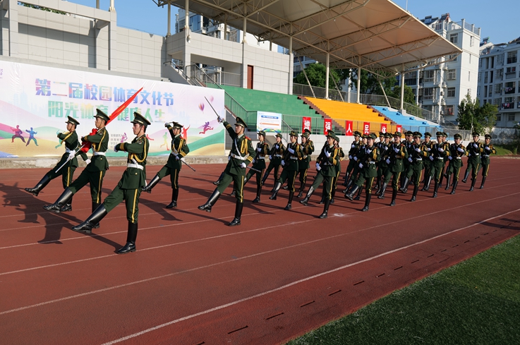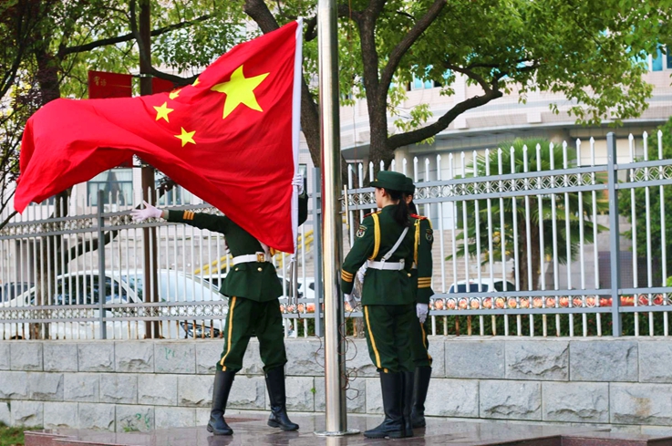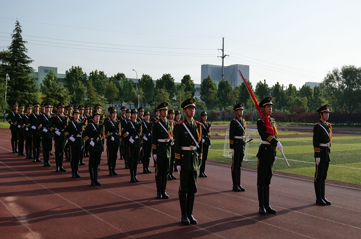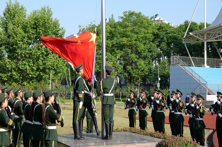 早上6点40分,仪仗队迈着铿锵的步伐,护送国旗入场,气氛庄严肃穆。伴随着激昂的《义勇军进行曲》,五星红旗冉冉升起,承载着新的希望,激发了青年不断向上的斗志。